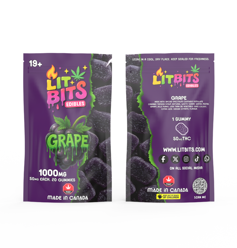 Proudly crafted in Canada, LitBits Edibles combine premium ingredients, precise formulation, and fruity, mouth-watering flavors to deliver a superior edible experience. Our Broad Spectrum Distillate infused, vegan, pectin-based gummies are made for smooth texture, clean taste, and consistent potency you can count on—every time.